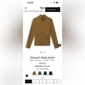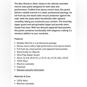 Ibex 100% Merino Wool Shak Full Zip Jacket Womens Size Small