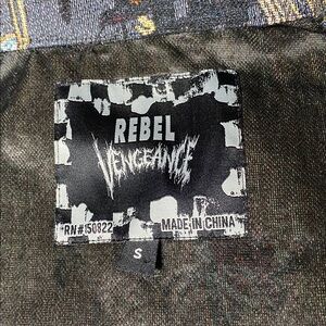Brand New Condition Rebel Vengeance Jacquard All Over Print “Starving Giant Skeleton” Button Up Shirt Jacket (multi colored) Men’s size Small or Women’s size Medium .