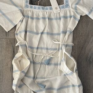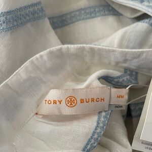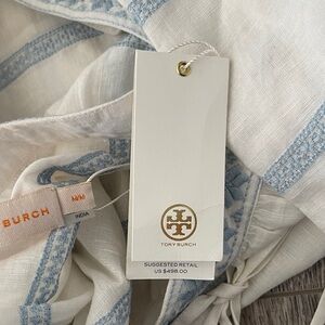 Tory Burch Light Blue and White Striped Midi Dress