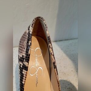 Jessica Simpson Snakeskin Heels — Tan & Black Platform / Pump (5 1/2")