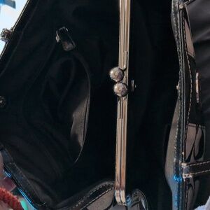 CALLOUT NO HANG TAG and Patent leather handle is cracked does not affect the bag.