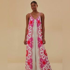 Farm Rio x Anthropologie Satin Printed Pants Wide Leg Pant SIZE S