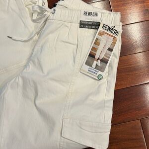 NWT-Rewash White Utility Cargo Jogger Pants-Comfort Stretch Athleisure
