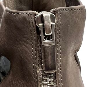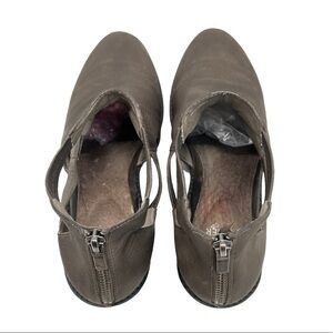 Eileen Fisher Vanda Tumbled Nubuck Leather Dark Gray Cut Out Booties