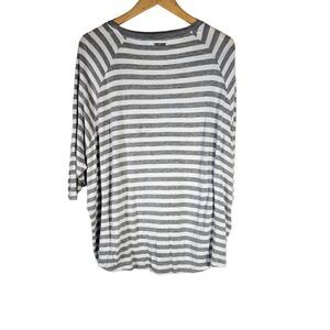MICHAEL KORS WOMEN'S GREY/WHITE STRIPED 3/4 SLEEVE TEE 0x