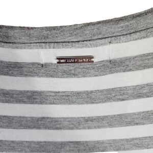 MICHAEL KORS WOMEN'S 0x GREY/WHITE STRIPED 3/4 SLEEVE TEE