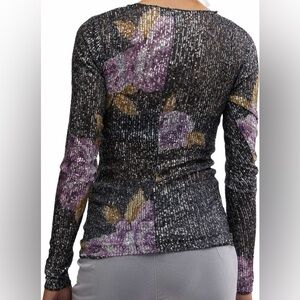 Free People New Floral Long Sleeve Sequin Women's Top, Medium