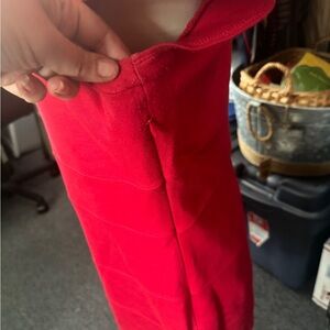 Elegant red dress with stylish design. Ideal for versatile wear. Gently pre-worn. Just had it dry cleaned. Some pulling under the armpit see picture. Very minimal.