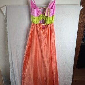 Show Me Your Mumu Calloway Cut Out Dres in Cantaloupe Luxe Satin