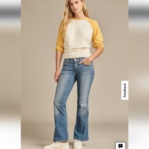 Lucky Brand Sweet mid rise flare jeans in classic medium wash denim. Soft stretch fabric with a flattering fitted thigh and flared leg silhouette.