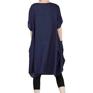 LaovanIn Women's Plus 3XL Tunic Dress Summer Cotton Linen T Shirt Knee-Length