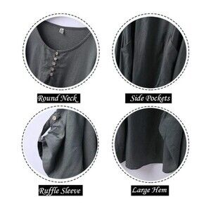 Women round neck with 5 front buttons linen long oversized t shirt dress loose pocketed knee length dresses