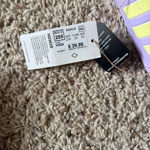 Adidas slides featuring pastel stripes. Comfortable and trendy design.