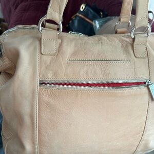 Elegant tan handbag with sleek silver zippers. Ideal for daily wear.This is a final sale no returns please ask any questions;)) this bag retails for 695.00