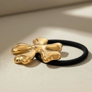 18K Gold Plated Stainless Steel Sculptural Flower Ponytail Cuff Hair Tie