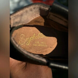 Seychelles — Black Leather Stacked Heel Ankle Boots