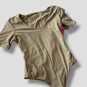 This elegant beige bodysuit offers a sleek and stylish look. Perfect for any occasion, it features a comfortable fit and a classic design.