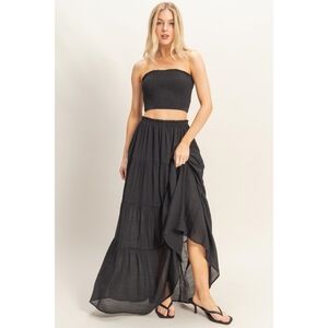 HYFVE Black Smocked Crop Top & Tiered Rayon Blend Maxi Skirt 2-Piece Set