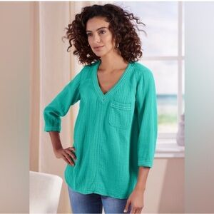 Soft Surroundings Aqua Beach Bound Gauze Pullover Small