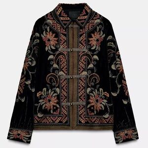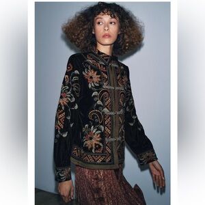 Zara Black Floral Embroidered Bomber Jacket