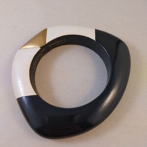 Elevate your style with this chic bracelet featuring a striking black, white, and gold design. Perfect for adding a touch of sophistication to any outfit.