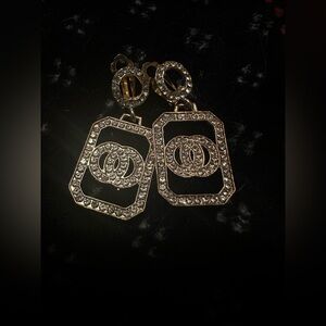 These stunning earrings feature a luxurious gold and rhinestone design, perfect for adding a touch of elegance to any outfit. The intricate detailing and sparkling accents make them a must-have accessory.
