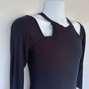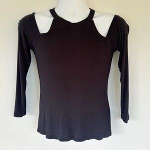 Venus black cut out cold shoulder long sleeve ribbed knit stretchy spandex blend tee size medium