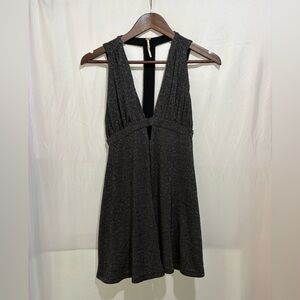 Free People Dance Of The Night Metallic Silver V Neck Mini Dress Size X Small