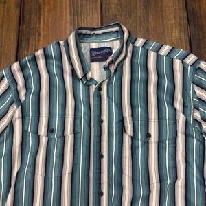 Wrangler Mens large brushpopper Short Sleeve Western striped Button Down Shirt