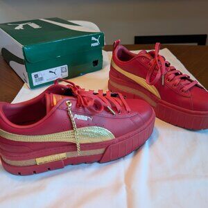 Perfect 49ers shoes! Puma Mayze "I Am Determined" platform sneakers in the rare red and gold colorway. Only worn twice. In great, almost-new condition, please see pics. Includes box. In my opinion "Mayze" are narrow at the toe so I buy them half size larger and they fit perfectly (I normally wear size 9).