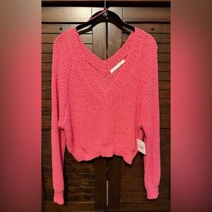 Altar'd State Vibrant Pink V-Neck Sweater