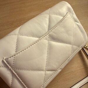 Chic Tory Burch bag in quilted cream leather. Can be wore as a shoulder bag or crossbody, perfect for versatile styling. Features two card slots inside. Smoke free home. Minimal wear on the outside pocket (see third pic). Any questions, feel free to ask!