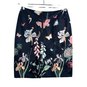 Anthropologie Leifsdottir Pencil Skirt sz 8 Navy Floral Butterf boho money