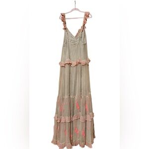 Free People Embroidered Maxi Dress Boho Ruffle Floral Size S