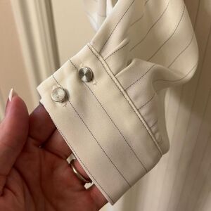 OASIS Women's White With Black Pinstripe Button-Up Long Midi Shirt Dress US 8
