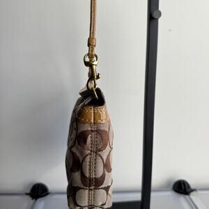 Authentic early 2000s Coach mini shoulder bag in classic tan/brown signature canvas with gold-tone turnlock closure. Compact Y2K silhouette with original Coach hangtag included. Perfect everyday mini.