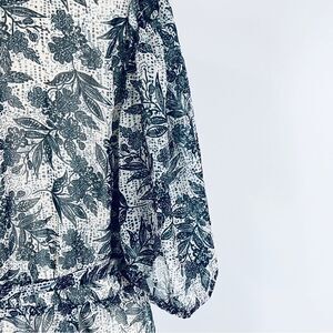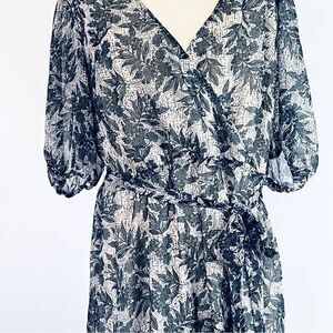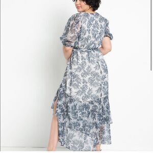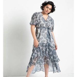 Eloquii Sheer Floral Wrap Dress Ruffled Tiered Skirt 16 Blue Cream