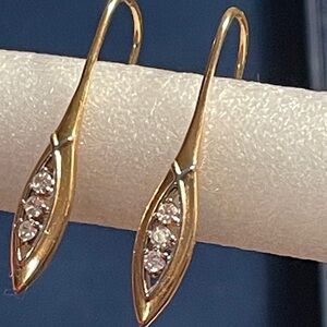 These elegant drop earrings feature a stunning combination of gold and silver tones, perfect for adding a touch of sophistication to any outfit. The sleek design is both modern and timeless, making them a versatile addition to your jewelry collection.
