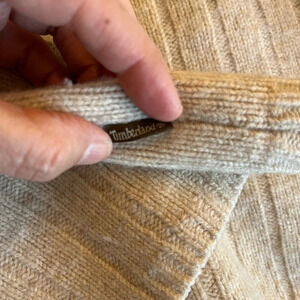 Timberland Women's (Unisex) Lambswool Oversized V Neck Sweater, Beige Size XL