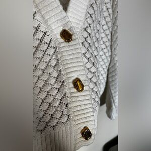 Meshki White Cotton Loose Crocheted Cardigan
