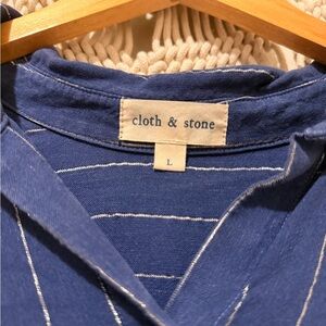 Cloth & Stone Shimmery Silver Line Navy Striped Button-Up High Low Hem Shirt Large