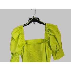 The Puff Sleeve Faux Wrap Dress from Christopher John Rogers for Target exudes the striking style reminiscent of Christopher John Rogers' love for elaborate designs. Pouf sleeves with ruffle detailing take center stage on this bright yellow midi dress fashioned from crisp, polished poplin, complete with their straight-cut fitted cuffs for a dynamic look. A faux-wrap silhouette ending with a tulip-like hemline brings lovely shaping alongside a smocked panel at the back, and a square neckline puts a sleek finish on the piece.