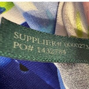Lauren Ralph Lauren sheath dress showcases a vibrant floral print in shades of blue, green, and white. Designed with a flattering surplice V-neckline and elegant side ruching, this sleeveless piece offers a sophisticated silhouette suitable for various occasions. The stretch jersey fabric ensures a comfortable fit while maintaining a polished look. No odors/stains/holes.