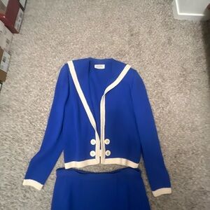 St. John Royal Blue and Cream Knit 2 Piece Suit with Skirt