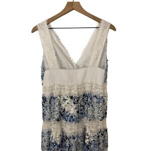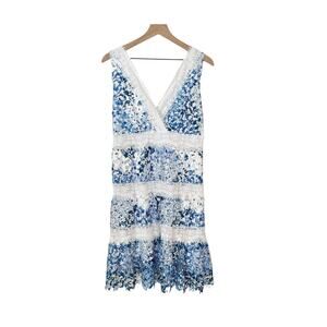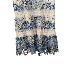 Tahari Blue White Lace Embroidered Eyelet Dress Sleeveless Size L