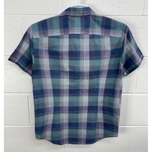 John Varvatos USA Shirt Blue Gray Plaid Cotton Short Sleeve Designer / Men's S