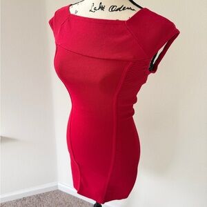 Bebe Bandage Dress Off Shoulder Red Scarlet Sz M Cherry girl Glam Preppy core