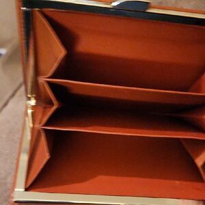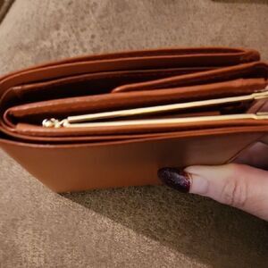 Givenchy wallet in tan leather. Features a stylish gold French kisslock clasp. Ideal for everyday elegance. Stunning wallet.