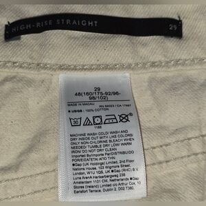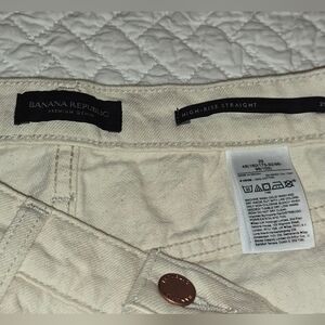 NWT Banana Republic Cream High Rise Straight Jeans Women's Size 29. Tags detail the jeans. Measurements of the jeans are shown in the pictures. Stovepipe-style fit that is slim through the hips and thigh before extending straight through the legs. Like a 90s straight. Standard five-pocket styling. Smoke-free and pet-free home.