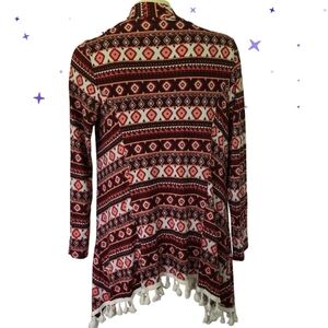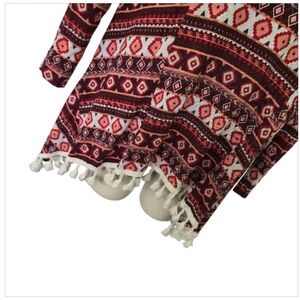 LA ROPAS Flowy Tassled Aztec Native Design Long Sleeve Kimono Red Cream Medium